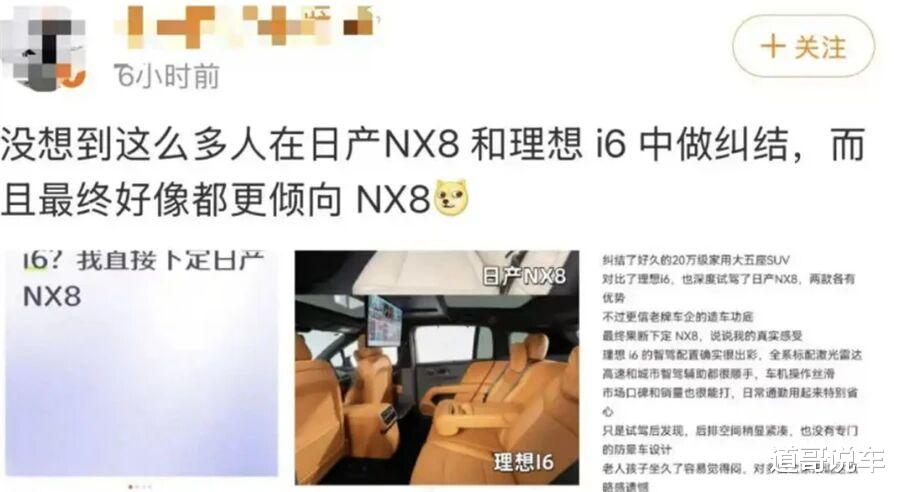 第一个细节:NX8上市次日,小红书、抖音等平台涌现大量"买车二选一"帖子,清一色将日产NX8与理想i6对比,评论区出现高度相似的回复——"纠结了好久,最后还是选了NX8。"理想法务部随后公布证据,指出这些帖子IP地址和发布时间高度集中,内容同质化。