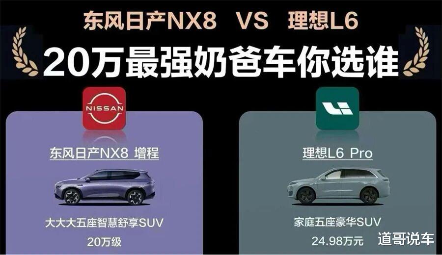 东风日产NX8的起售价是15.99万元,理想i6的起售价是24.98万元,两者之间有将近9万元的价差。