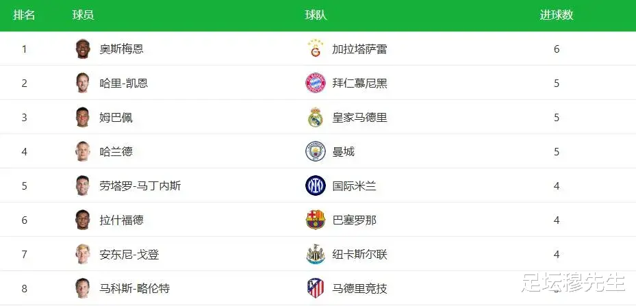 当然,黑马也是大家乐于寻找的元素。第一轮,就有一场不小的冷门,令人震惊——本菲卡主场2:3不敌卡拉巴赫。此战本菲卡是2:0领先被对手连扳三球强势翻盘,也正是这场失利,让穆里尼奥回到了久违的老地方。而卡拉巴赫也不是蒙的,人家后面三场比赛1胜1平1负,目前4轮拿到7分,位列附加赛区。这是赛前很多人都想不到的。尤其是第四轮,卡拉巴赫居然在客场2:2战平切尔西。说实话,这1分的含金量,甚至强于他们客场击败本菲卡拿到的3分。至于其他的疑似黑马,只是开局一两场打得不错,后面就逐渐现出原形,差点意思。比如圣吉罗斯联合,首轮客场3:1击败埃因霍温,令人震惊;但次轮马上给出一场主场0:4的惨败,对手是纽卡斯尔联。可见,这个欧冠新军,实力不宜高估。那么,卡拉巴赫是本赛季欧冠最大的潜在黑马吗?其实卡拉巴赫的考验还在后面,他们还要在客场打利物浦。而且前四轮他们遇到的本菲卡和切尔西,正好都处于低谷,让他们占了便宜。其实,本赛季欧冠第一阶段,隐藏着一个更牛的潜在黑马。他们4轮3胜1负拿到9分,和大巴黎皇马并列。而且,他们击败的对手中,不乏利物浦,阿贾克斯这样的豪门。更牛的是,你看四轮过后,欧冠射手榜榜首是谁?不是姆巴佩,哈兰德,凯恩。这三大顶级射手,至少在这个节骨眼上,都排在他后面——奥斯梅恩。加拉塔萨雷,也许才是本赛季欧冠最大的潜在黑马。4战3胜1负,加拉塔萨雷只是因为净胜球的劣势,位列第九,但也非常接近前八的直接晋级区了。而且,加拉塔萨雷主场1:0利物浦,客场3:0阿贾克斯,这都是整个赛季都数得着的辉煌战役。同时,也是欧冠赛场数得着的冷门。