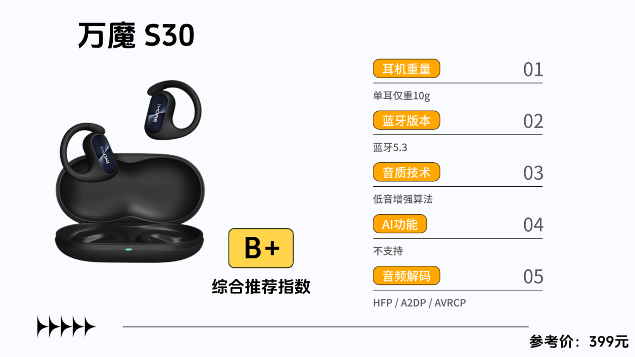 推荐理由:主打“舒适和音质”性能的开放式耳机,业内TOP1口碑爆品