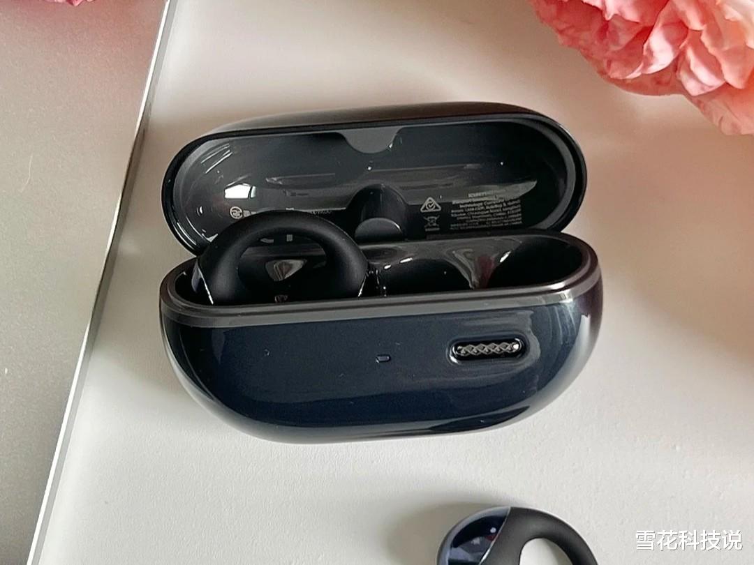 佩戴方面:这款耳机在舒适性上确实有明显短板,戴久了耳廓会有疼痛感,体验不算好。不过它的结构设计挺有想法,用液态硅胶包裹着高韧性记忆钢丝,单只重量也只有 5.85g,还能根据不同人的耳廓曲线智能贴合。