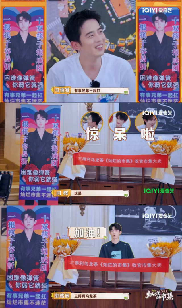 灿烂兄弟郭俊辰因其他工作冲突未能到场,不过人虽没来、但技能土味应援必到啊!他拉横幅、送大麦花束、贴土味创意海报,每一句的加油话术都有他的小巧思和设计,这一波应援可以说是抽象与感动并存了!