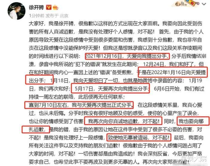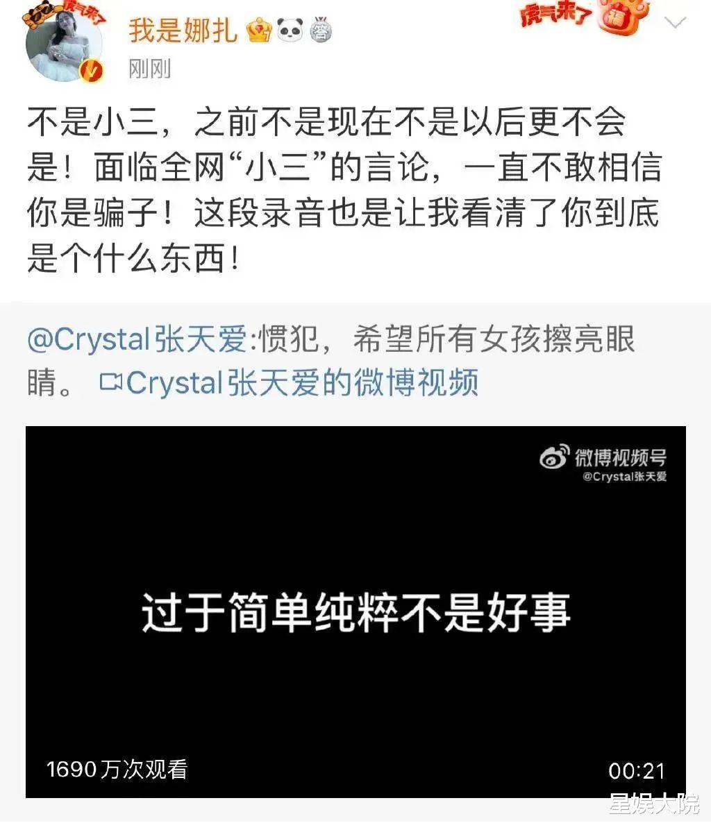 张天爱晒录音锤渣男,娜扎也紧随其后加入队伍,对徐开骋进行了一番指控。