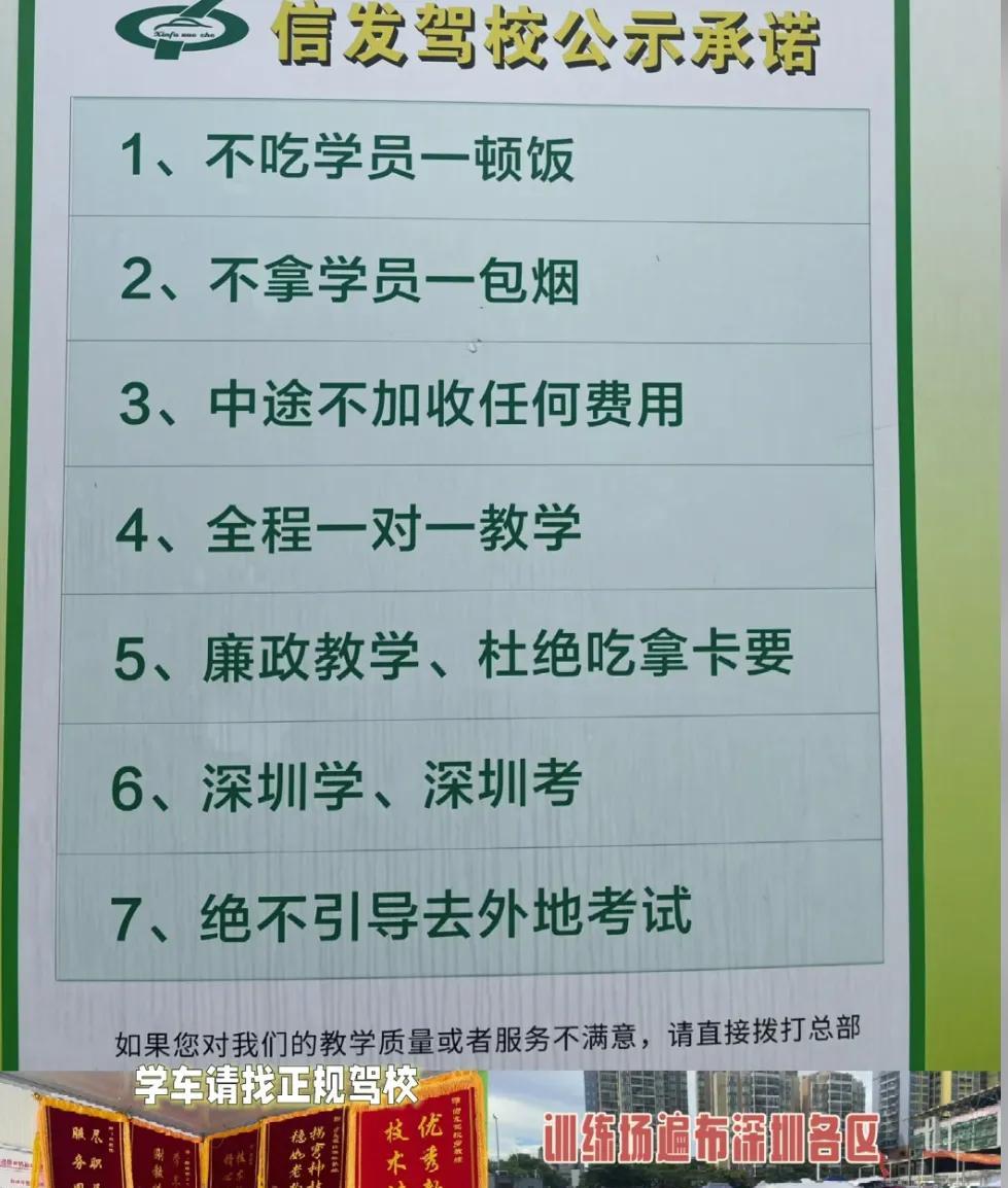 说了这么多,你可能还是一头雾水,不知道该怎么选驾校。别急,给大家推荐一家深圳口碑不错的驾校——信发驾校。这家驾校是深圳交委备案的正规直营驾校,杜绝教练吃拿卡要,所有承诺都白纸黑字写在合同里。他们的通过率也很高,服务也到位,值得信赖。当然,这只是个参考,最终选择哪家驾校,还是要根据自己的实际情况来决定。