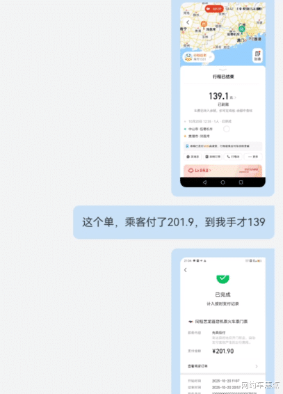 最近有车主晒出的一笔跨城订单显示,乘客支付 201.9 元,扣除平台费用后,他实际到手仅 139 元。“当初加入顺风车,就是觉得顺路带个人能分摊点油费,可现在到手的钱连油费都快覆盖不了了。” 李先生无奈地说。