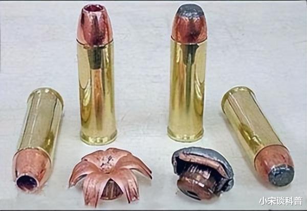 半被甲软尖弹:这种弹头设计为在穿透目标时能够扩张,造成更大的伤害。它们的前端露出未被金属包覆的铅,因此前端呈现出铅的灰色。