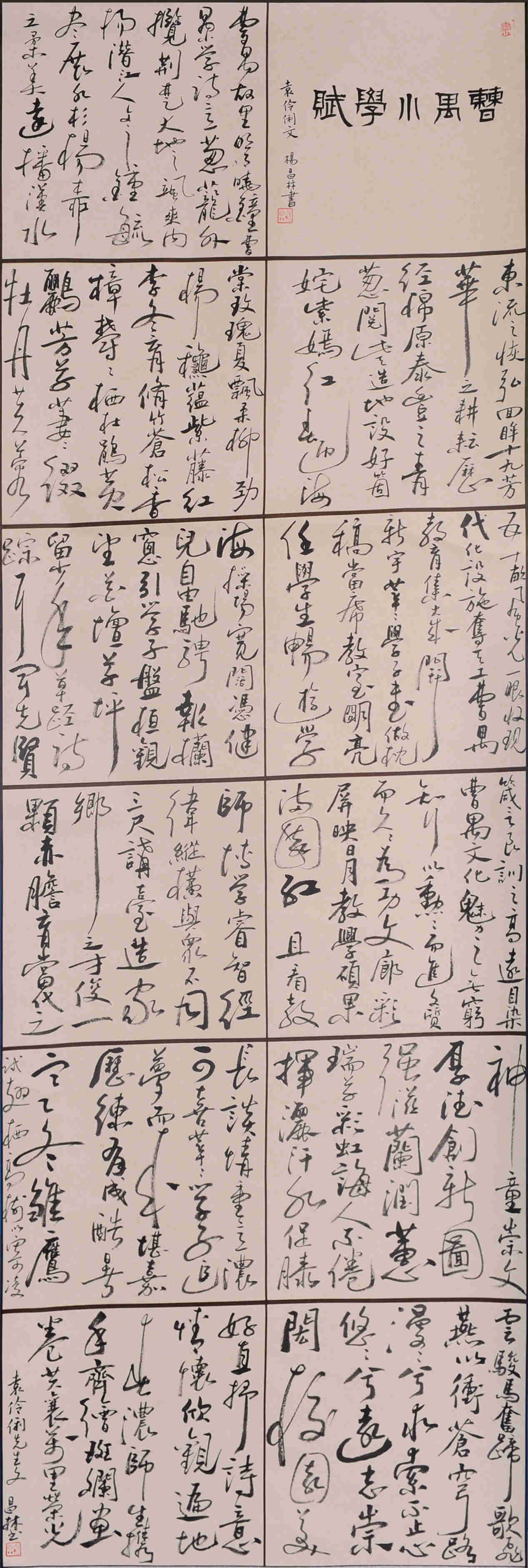 高彤(笔名),男,中国人民大学艺术学院特聘校外高级书法教师,首都师范大学中国书法文化研究所书法艺术教育系硕士研究生课程班毕业。中国书法家协会会员、国家一级美术师、湖北省书法家协会会员、中学高级教师。潜江市曹禺小学专职书法教师、潜江市昌林艺苑主持人。