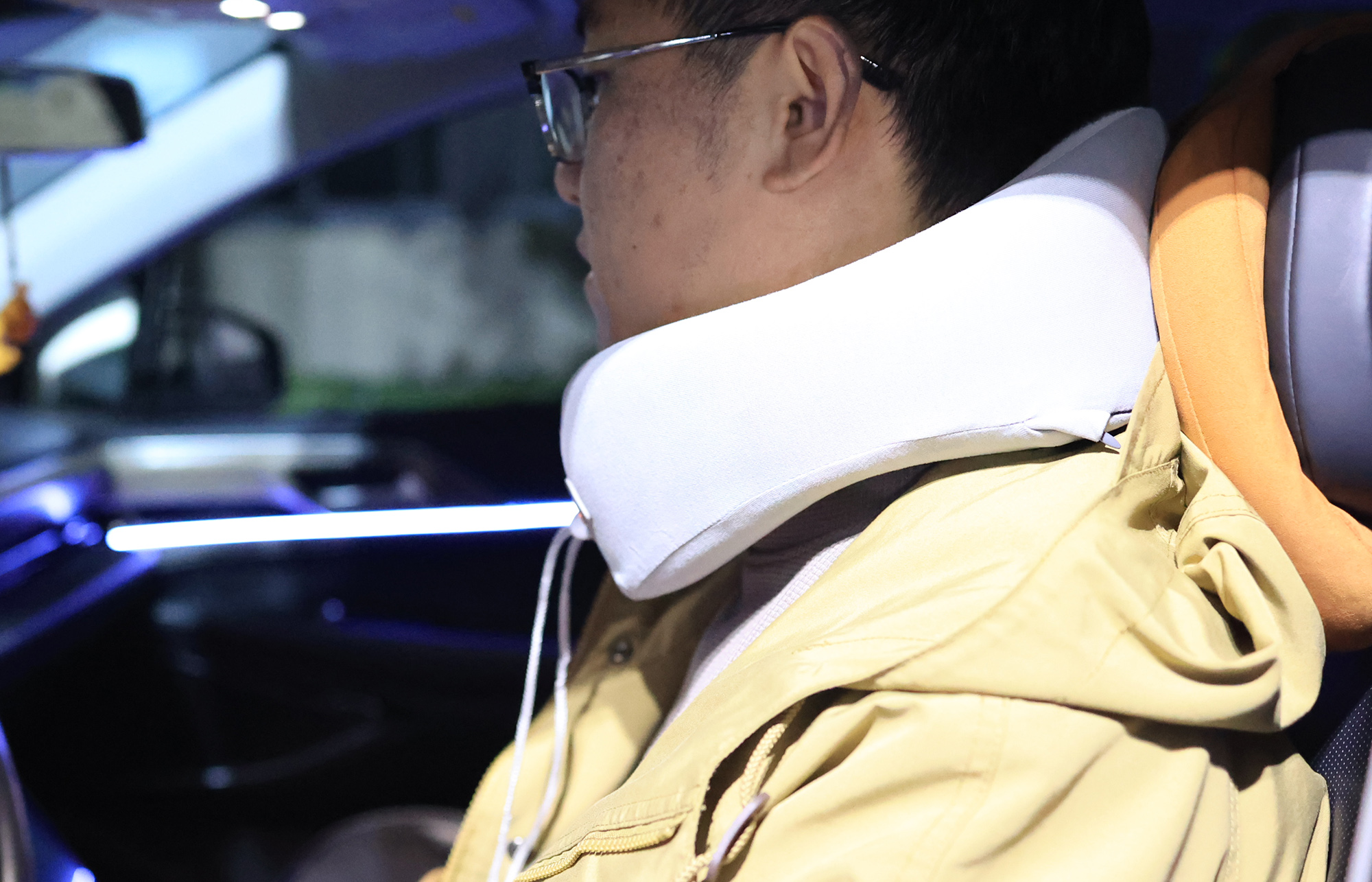 即使是外出旅游,它也成为了我的不二之选。开车的时候直接扣在脖子上,一定程度上减缓了我的驾驶疲劳。坐飞机或者高铁的时候同样也随身携带,放在行李箱中也不会占用太多空间,一举两得。