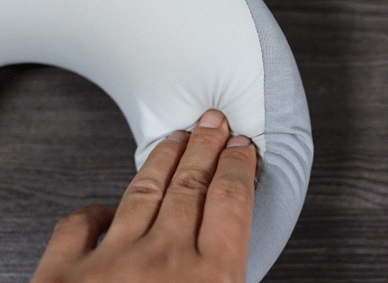 当然也不用因为它可收纳而质疑了它的舒适性,整个护颈枕用了一个仿生学的曲线设计,在侧向和后颈都有了一定的支撑设计,从图上可以看出来,它是后侧高,两侧有一个弯曲的弧度。在实际使用的过程中,它可以填补脖子中的空隙,把其紧紧的抱住,在一定程度上也防止了低头。
