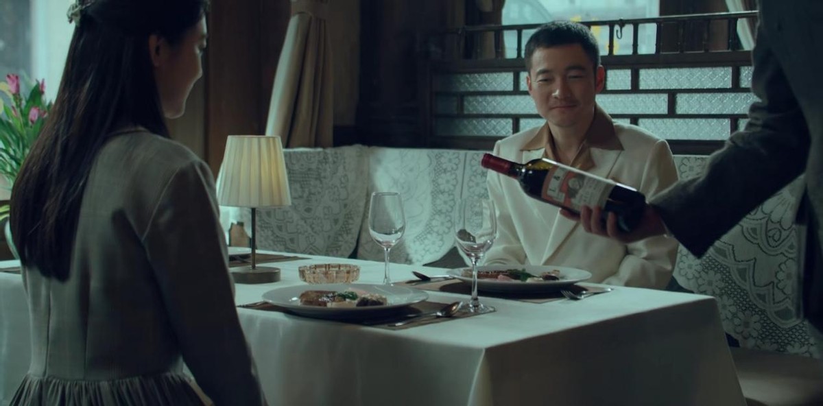 与蔡孝乾在西餐厅吃饭时,半扎着头发,穿着格子上衣,学生气十足,很符合其演绎的十几岁少女的形象。