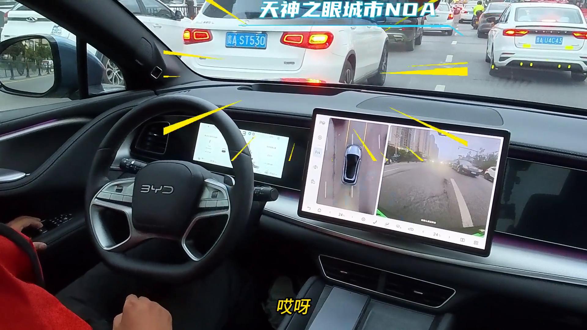拥堵路段博弈变道,实际使用下来感觉天神之眼B还是相对保守了,或者说是太注重文明礼让了,不过毕竟安全第一,没毛病。