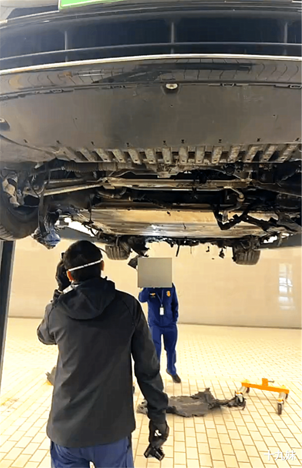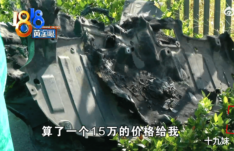 高先生介绍,主要的着火位置是副驾驶正下方的电池,然后从这里蔓延到全车。