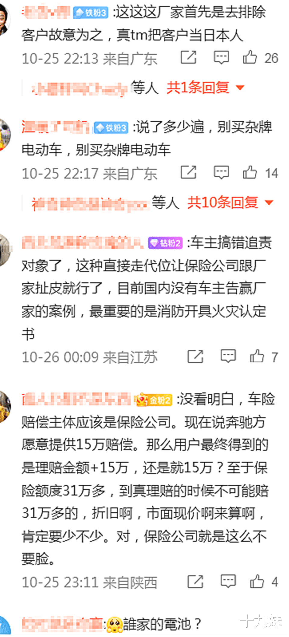 笔者看有网友评论:这不挺好的吗?车损险赔31万,厂家再给15万,另外两辆遭殃的车和物业损失有三者险来赔,车主也不吃亏啊?还能赚不少呢。
