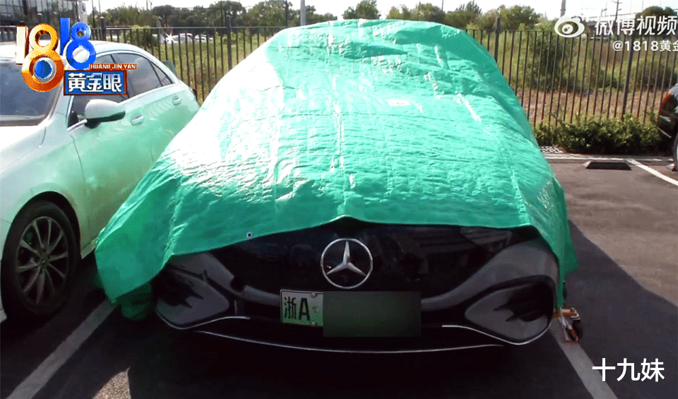 高先生的车被拖到了嘉兴一家奔驰4S店,车子仍被篷布盖得严严实实,旁边还有消防贴的封条,证明起火原因还在调查当中。