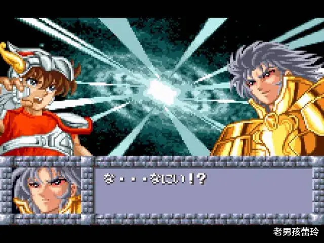 到了圣斗士的对战环节进步更为明显,不仅有了背景画面,角色和背景也是全彩显示,双方角色在行动时都有丰富的演出动画,战斗期间还会穿插贴合剧情的角色对话,细节处理可谓用心十足。