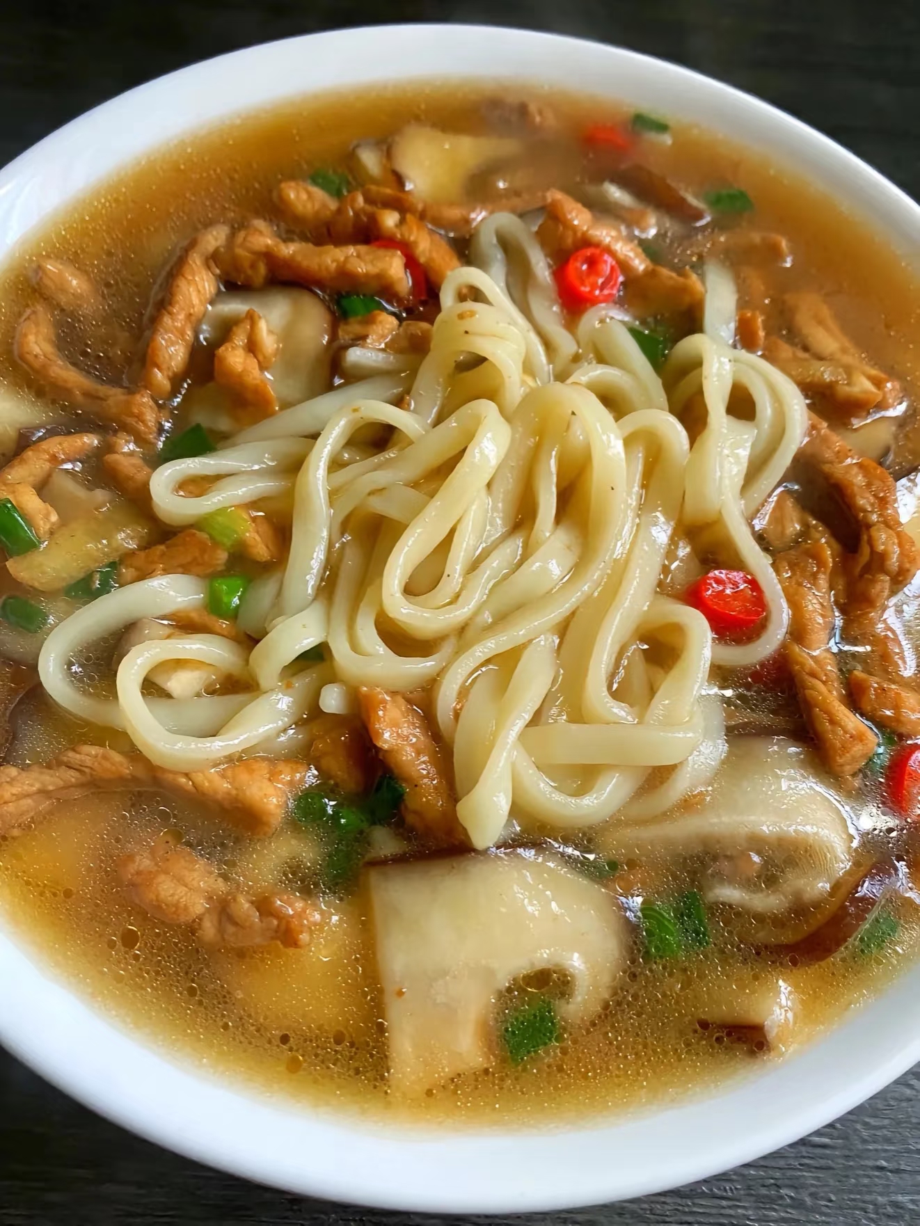 此刻,我捧着碗坐在飘窗前,看路灯把面汤的热气染成金色。这碗穿越时光的香菇肉丝面,不仅填饱了胃,更治愈了那些在生活里摸爬滚打的疲惫时刻。毕竟,能认真对待一碗面的人,也一定认真爱着这个世界吧?