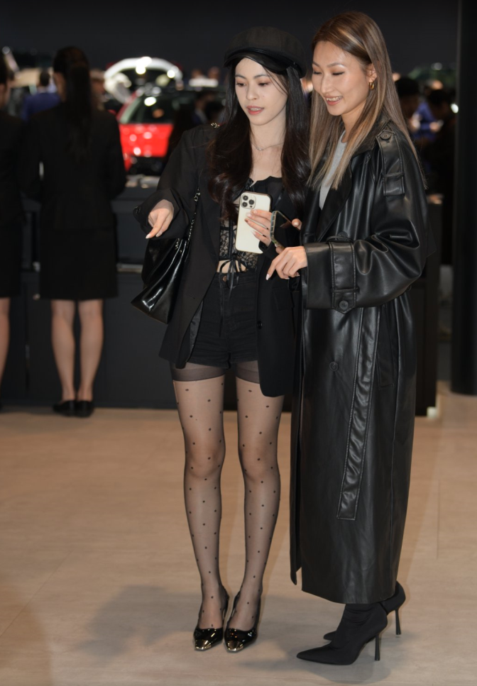 #暗黑系穿搭# 。 #车展街拍# 。 #波点美学#