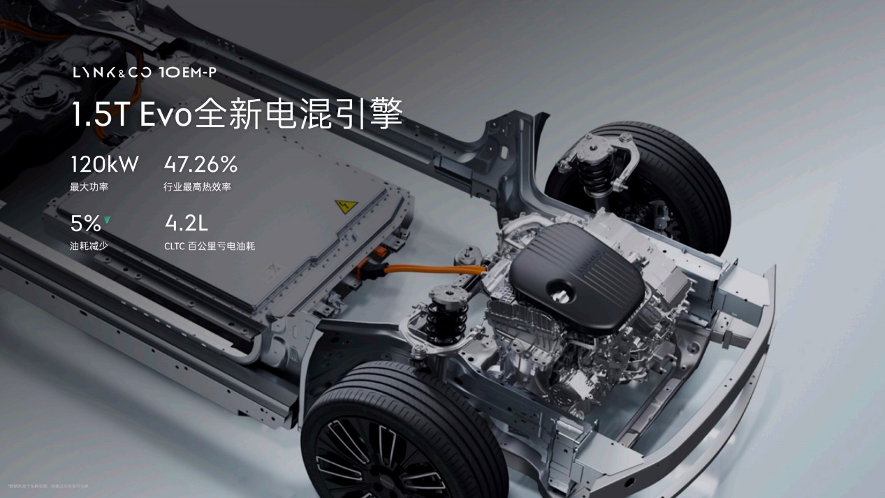 在关乎驾乘质感的底层架构上,领克10 EM-P依托CMA Evo中大型车平台,采用了纯铝合金双叉臂前悬架与增强型五连杆后独立悬架的组合,并引入了液压可变阻尼技术。这套底盘系统不仅带来了83.2km/h的麋鹿测试成绩,更在实际驾驶中提供了扎实稳健的滤震表现和精准的转向反馈。动力系统是领克10 EM-P的强项,其搭载的EM-P智能电混系统,由1.5T Evo电混专用发动机、DHT Evo电驱系统与后桥P4电机协同工作,综合输出功率达390kW,综合扭矩755N·m,实现零百加速5.1秒,而CLTC工况亏电油耗可低至4.2L/100km。这意味着日常通勤可享受电动车的平顺与静谧,长途出行则拥有超过1400公里的综合续航保障。