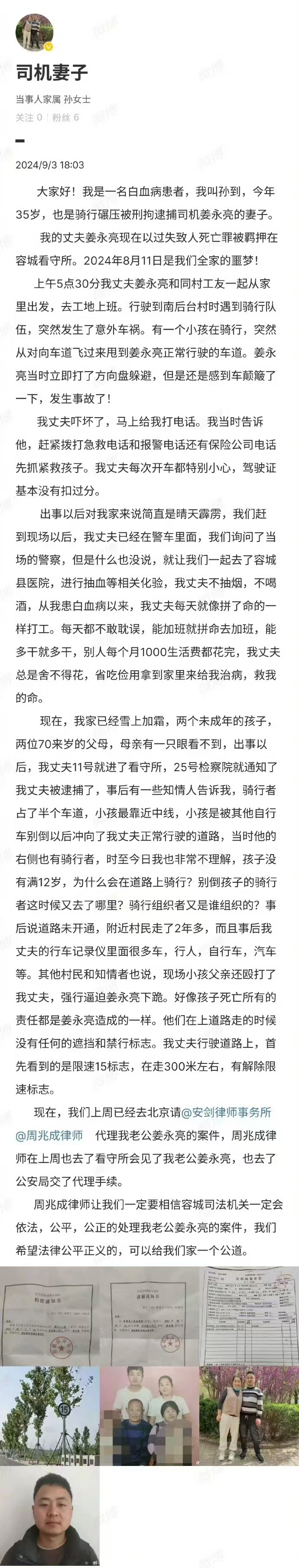 涉事司机姜某是一个普通的电焊工,家中情况本就艰难:妻子身患白血病,两个孩子尚年幼,母亲还残疾且一只眼睛失明。事故发生后,他不仅面临法律的责任,还要承受巨大的社会舆论压力。
