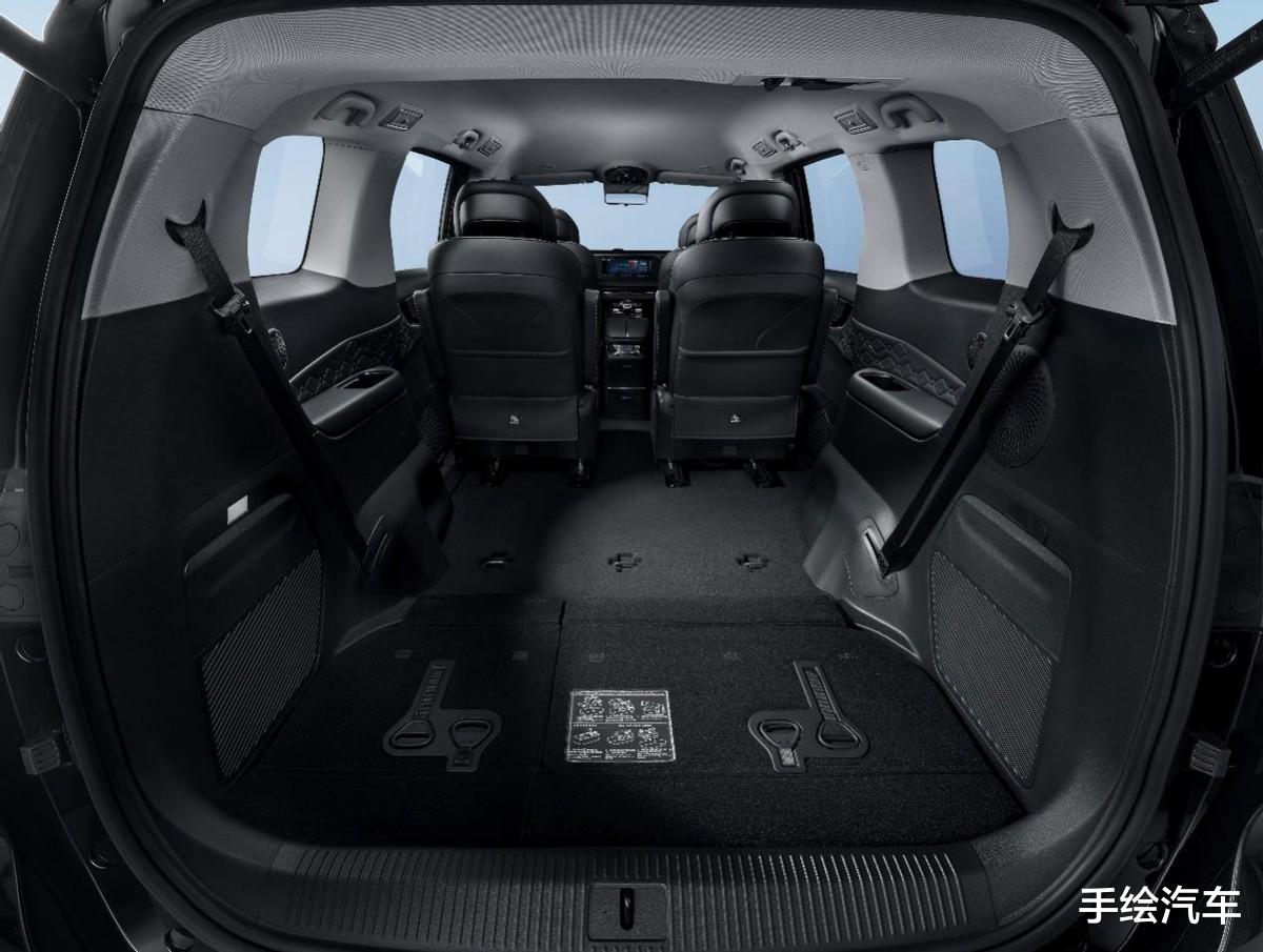 星海V9越享系列以5230*1920*1820mm越级车身与3018mm超长轴距,实现85.2%的车内空间有效利用率,5.54m²实用面积演绎“空间魔术师”本色,不管是2人小家庭还是7人大家庭,商务接待还是居家出游,星海V9都能满足。同级唯一的第三排4/6下沉放平设计,坐满7人,后备箱仍有同级第一的593L,7人份行李箱和背包轻松容纳,如果双人出行,将第三排折叠,后备箱依然同级最大,足足2616L,秒变1.7m大床房,既可小憩,也装得下帐篷、睡袋等露营装备。