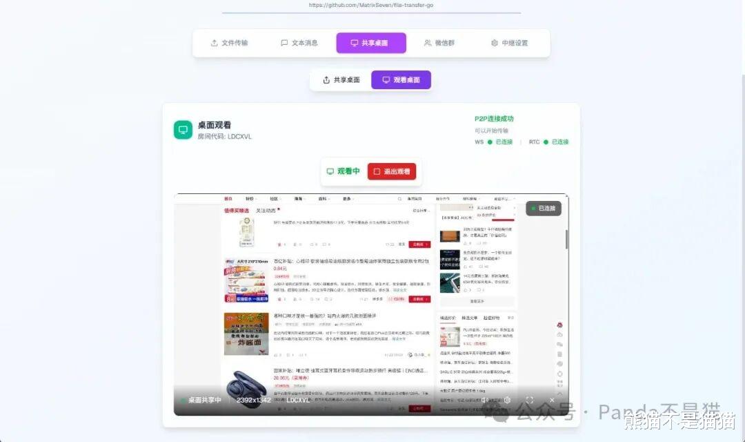 前阵子看到个超优秀的开源项目,能实现文件、文本的点对点和点对多传输,还支持桌面共享。因为传输是基于 WebRTC,所以它不挑设备和平台,而且页面自适应做得相当好。
