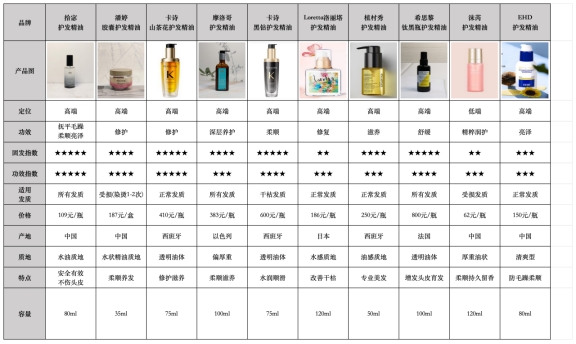(图片展示了我们测试过的一些护发精油类型)