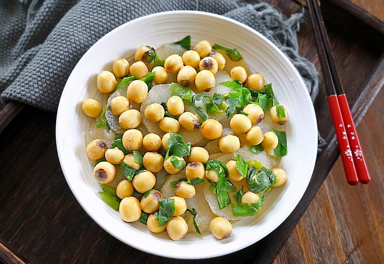 材料:山药200克、新鲜莲子100克、葱1棵、盐适量、生姜少许