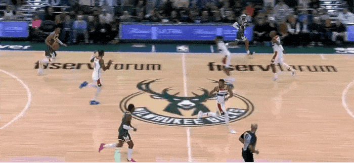 NBA常规赛,雄鹿对阵奇才的比赛正在进行中。