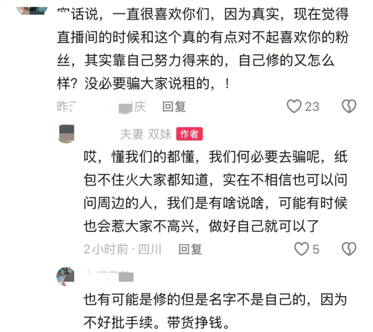 随着团队的壮大,原有的住房空间变得局促起来。为了改善居住条件,潘安和双妹儿一家决定搬家。最近,双妹儿分享了搬家的视频,新家宽敞明亮,环境优美,引发了网友的关注。一些网友猜测,这栋房子是他们新建的别墅,甚至有人说是潘安的姐姐出资建造的。面对网友的猜测,双妹儿多次澄清,新家是租来的,并非自建。