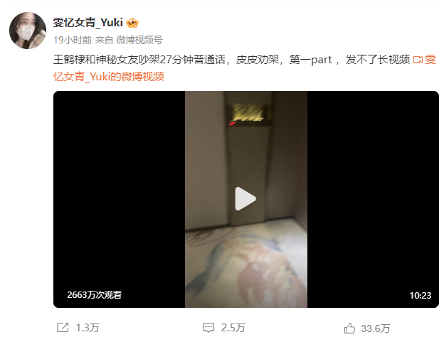 事情起因是8月25日晚某网友发布一条视频,称内容为王鹤棣和神秘女友吵架过程,紧接着该网友又发布了剩下的视频内容和许多疑似脱粉言论。