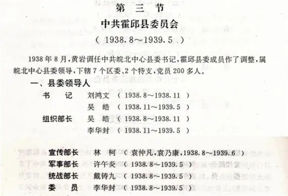 《中共安徽省霍邱县组织史资料》中,许午阳(许午炎)任军事部长