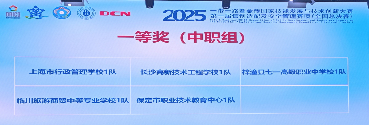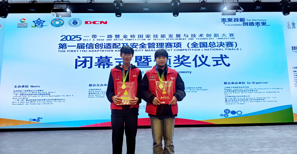 在上海举办的“2025年一带一路暨金砖国家技能发展与技术创新大赛首届信创适配及安全管理赛项全国总决赛”中,面对来自全国的126支顶尖队伍,梓潼七一职中代表队成员陈秦雨、李晨凭借精湛技艺与稳定发挥,经过激烈角逐,成功摘得一等奖桂冠。