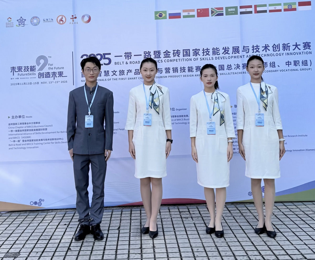 同期,在广西举行的“首届智慧文旅产品设计与营销技能赛项全国总决赛”上,由刘传奇、史安琪、孙鑫颜、李雅琪四位同学组成的代表队,其参赛作品《励志两弹城 “核”你一起》以独特的创意和深刻的内涵打动评委,荣获全国第二名(银奖)。