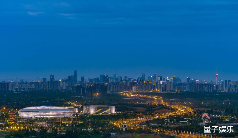 从龙泉山俯瞰夜幕下的东安湖体育公园(7月23日摄)
