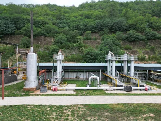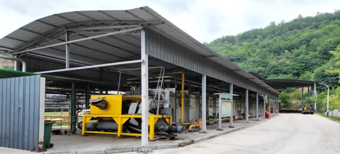 油泥收集:油泥一般分为固状油泥(落地油泥、油基油泥、钻井泥屑)和液状油泥(清罐油泥)两种。固状油泥由车辆运输到厂区内后就存放在料棚里,粉碎后用铲车装入往返隧道式热解炉。液状油泥由车辆运输到厂区内后卸入油泥收集池。