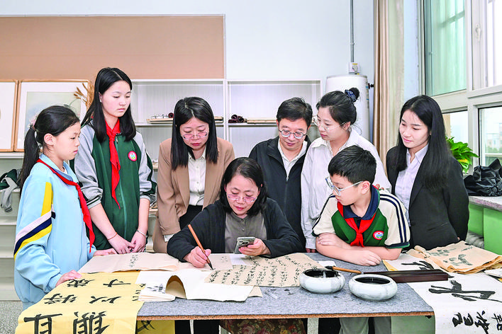 舞台艺术的“精气神”终须回归“以文化人”的实践。中国书法家协会女书家委员会副主任安文丽在“结对子·种文化”书法名家进校园活动中指出:“书法不仅是汉字的艺术,更是中国人精神的载体。”在夏县第二示范小学,名家受邀亲授运笔之道,学生贾皓雯兴奋地说:“老师的点拨为我推开了一扇新窗,让我看到了书法世界中更精彩的风景。”
