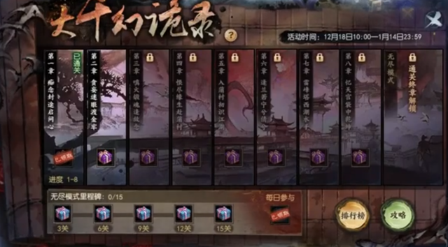 与天尊真武坛·冬季赛报名同一时间开启的,还有大千幻诡录。作为一念神魔的放置玩法,大千幻诡录现已全服开启体验,时间截至2026年1月14日。这个玩法的章节较多,在挑战过程中,需要大家不断学习和升级技能才可以通关。