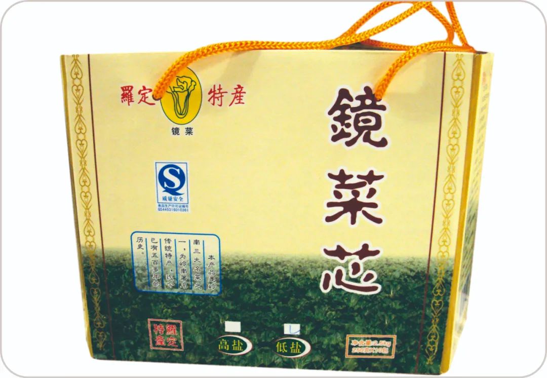 罗定镜菜,广东三大著名腌菜之一,是岭南著名特产,迄今已有500年历史。经精制而成的罗定镜菜,以风味独特、肉厚爽脆、芳香浓郁而闻名,是罗定市的特色农产品,畅销国内外市场。