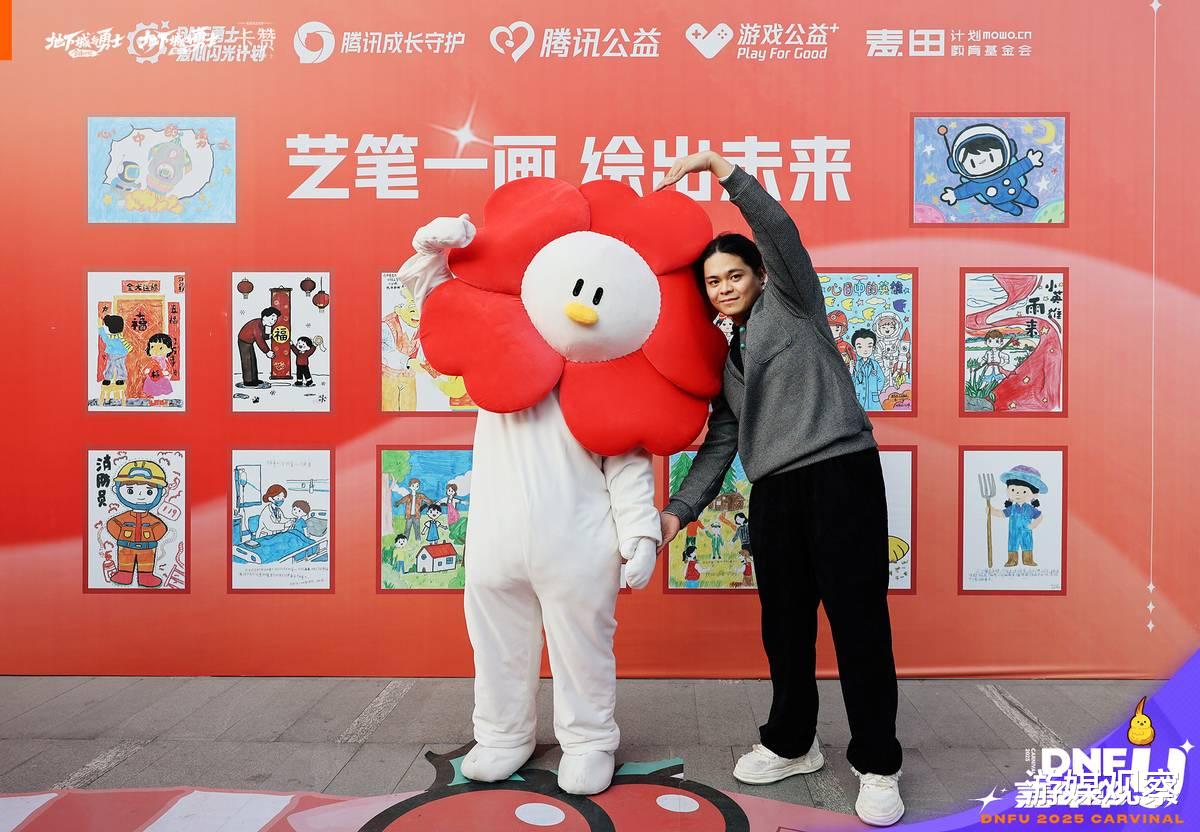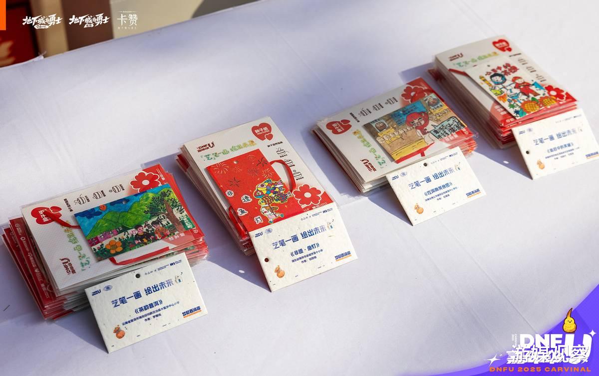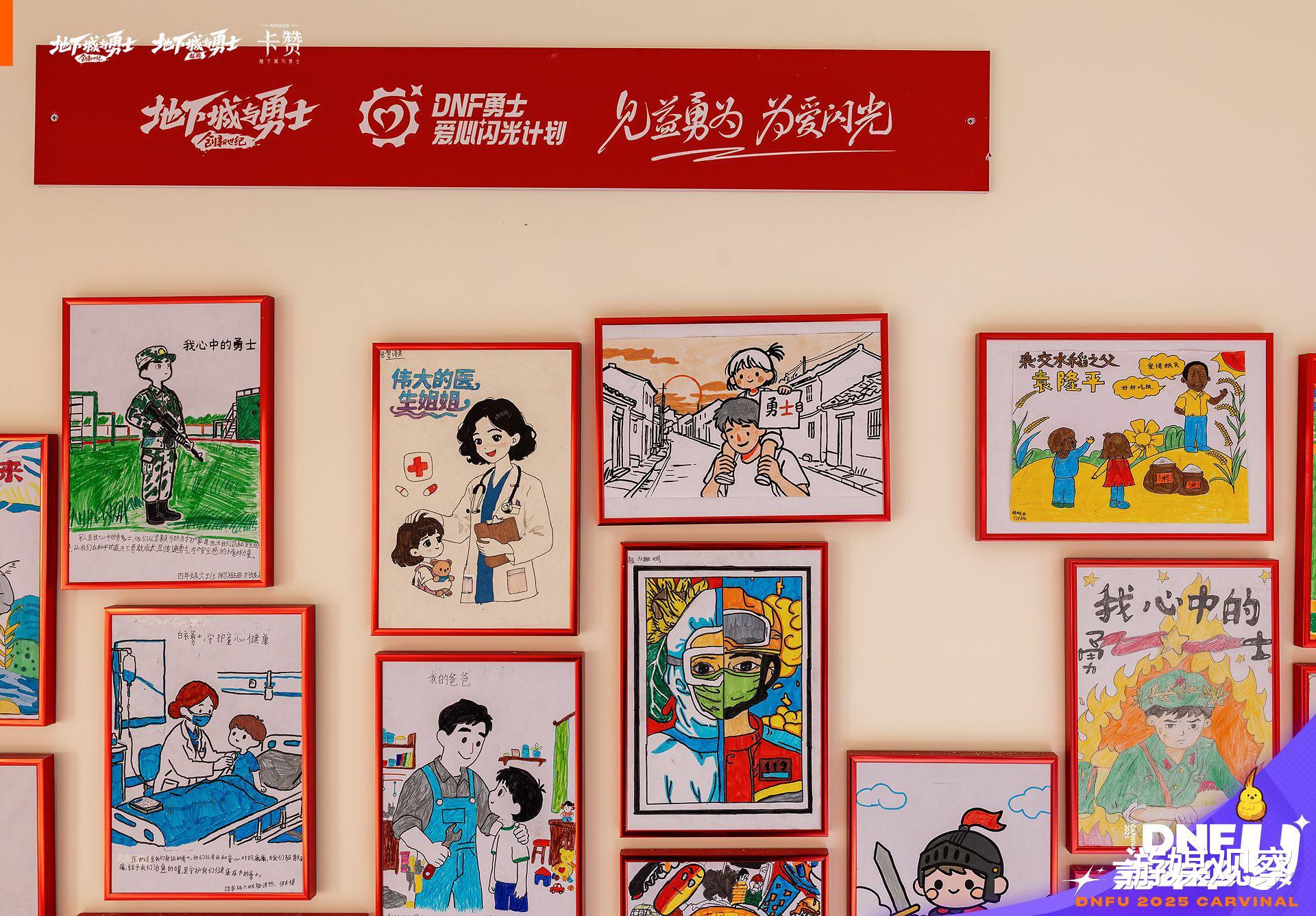 在今年DNF嘉年华的现场,有这样一个特殊的展位格外引人注目——不是炫酷的游戏体验区,也不是热闹的周边售卖处,而是一面充满童真的“勇士爱心画展”。