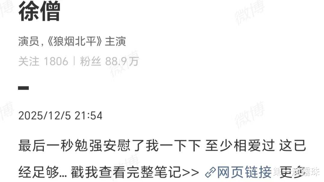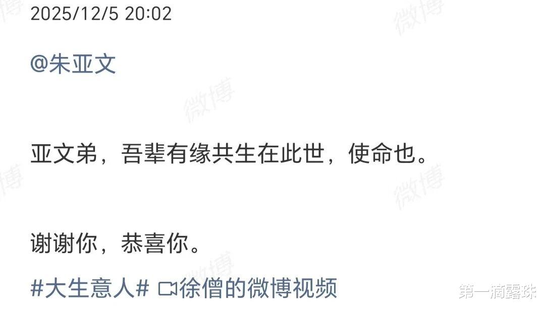 朱亚文饰演的李成被俘、自戕、白李夫妇生死别离后,徐僧在个人社交平台发文说:亚文弟,吾辈有缘共生在此世,使命也。谢谢你,恭喜你。