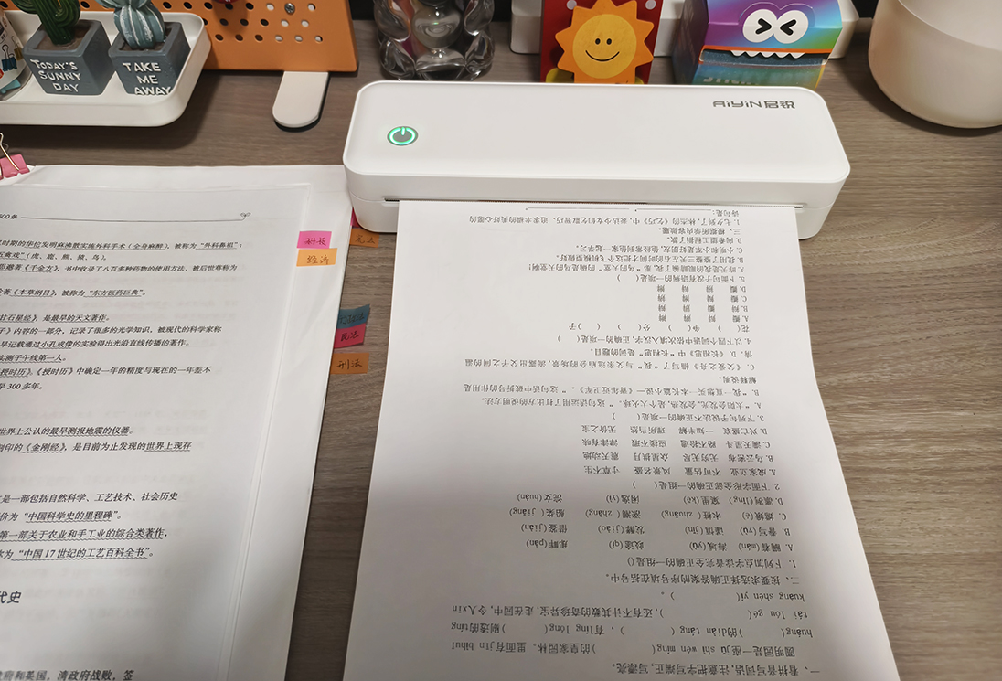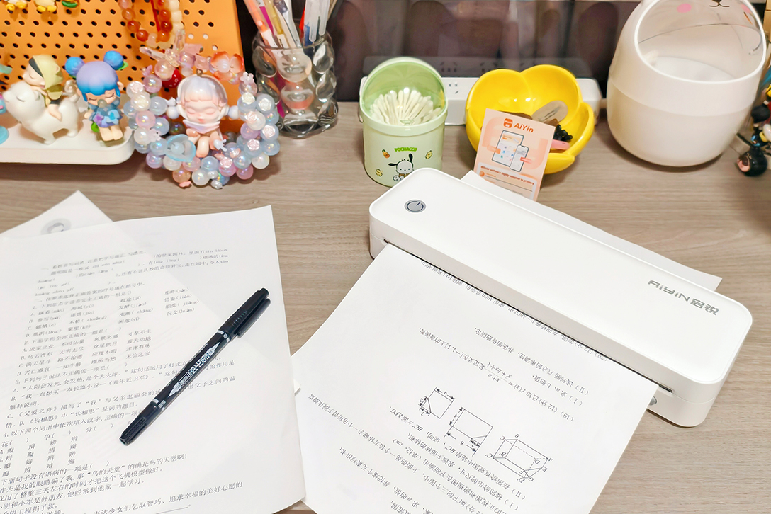 机身只比矿泉水瓶大一点,塞进书包随身携带,租房党书桌再小也不怕。更惊喜的是,它内置大容量电池,充满电能打200张左右,周末去图书馆自习室,不用找插座也能随时打印,真正实现“移动备考自由”。
