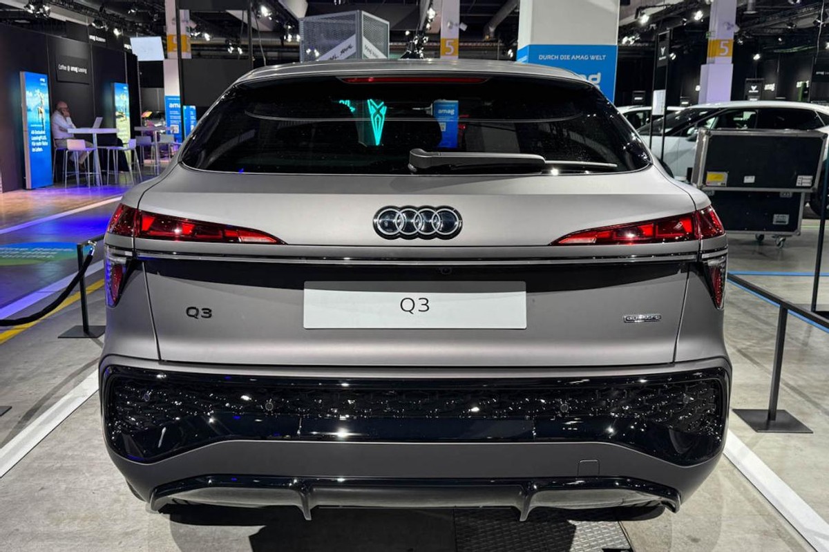 从车尾来看,前面提到的后腰线确实是很深刻的,而D柱溜背相对来说也比较协调。不过,跟尾灯组与后保险杠的运动包围相比,这些线条与角度就没那么出挑了。奥迪Q3 Sportback的尾灯实际也采用了分体结构,它既有中央横贯的刹车灯条,也有两侧的组合灯组,后者的上部分很像是过去的那种哥特教堂彩色玻璃,而下部分则覆盖了能流水点亮的转向灯;另外,由6块数字OLED面板组成的尾灯,也将会支持数字签名功能,未来预计会跟车辆的智能驾驶辅助系统形成一些呼应。