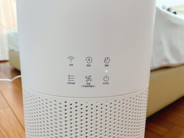 正面的可视化大屏非常实用,PM2.5数值、温度、湿度一目了然。还有3色氛围灯条,空气质量好不好,一眼就能看出来:绿色代表优,蓝色是良,红色就是差,带娃的时候瞥一眼就心里有数。操作是触摸按键,反应很灵敏,老人小孩也能轻松上手。