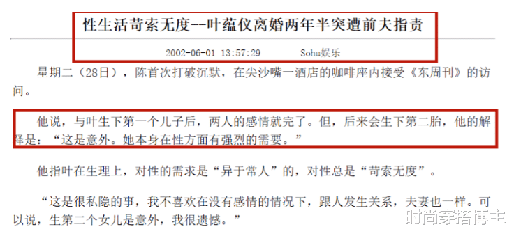 丈夫陈柏浩更是口不择言,直接将婚姻破裂的错全部归在叶蕴仪身上,并称她“对X生活索取无度,有很强烈的需求”!