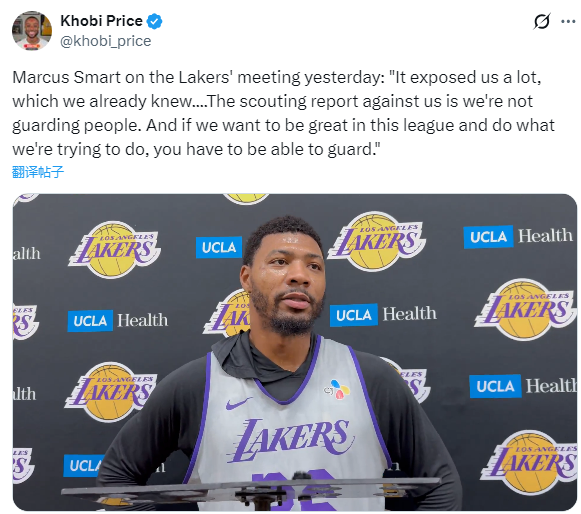 谈及湖人召开的队内会议,斯马特表示:这次会议把我们现存的诸多问题都摆到了台面上,而这些问题其实我们早已知晓,球探报告对我们的评价一针见血 —— 我们根本没在认真防守。如果我们想要在联盟里站稳脚跟、成为一支强队,实现既定的目标,就必须拿出过硬的防守表现。