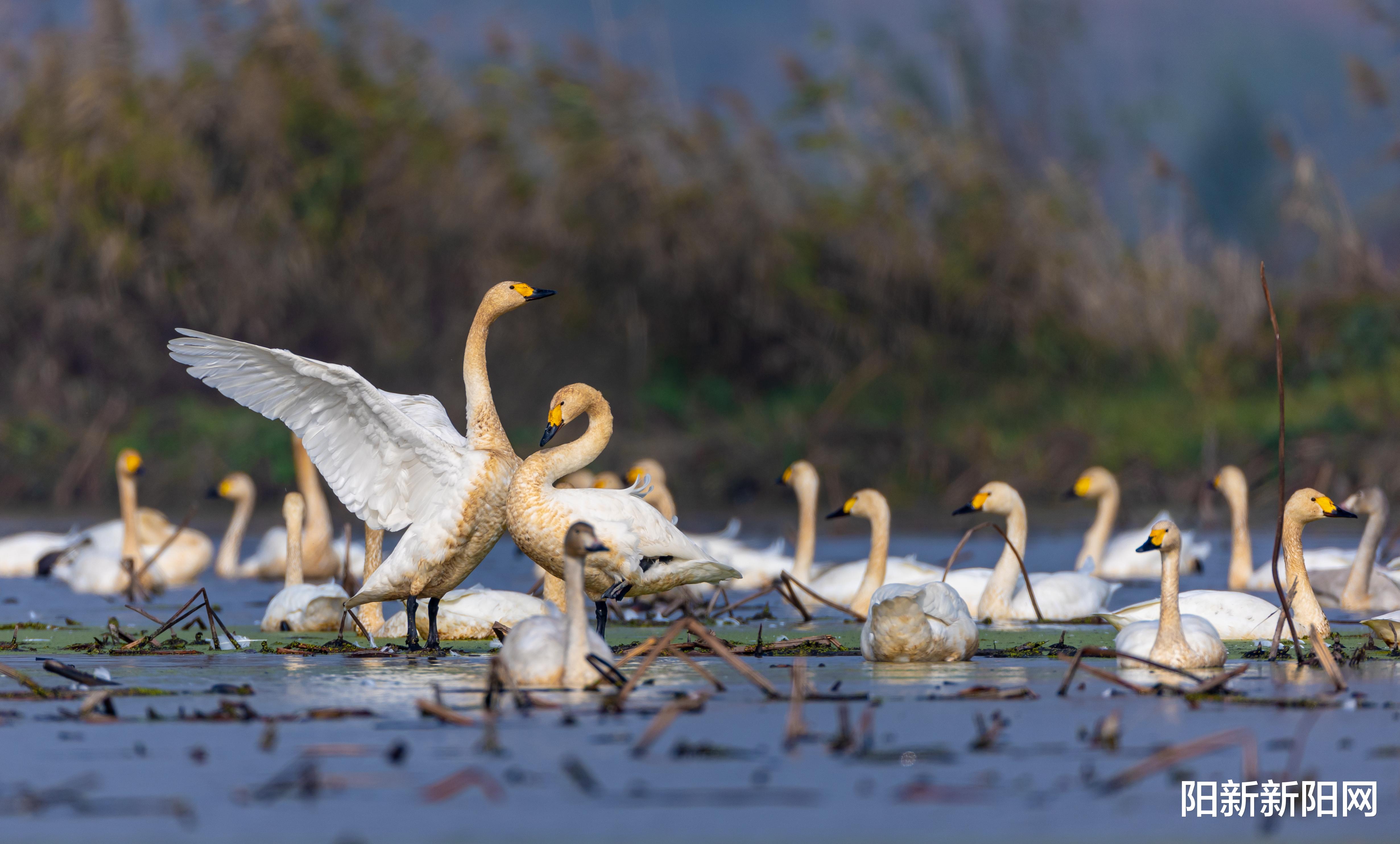 湿地被誉为“地球之肾”。阳新县拥有3.19万公顷湿地,占国土面积的11.45%。近年来,阳新县深入践行习近平生态文明思想,累计投入超2亿元推进网湖湿地生态修复,实施退垸还湖、退渔还湿近2000公顷,推动网湖水质改善至Ⅲ类,生物多样性显著恢复。莲花湖国家湿地公园已成为市民亲近自然的“城市客厅”。网湖湿地作为国际重要湿地,更是东亚—澳大利西亚候鸟迁徙通道上的“重要驿站”。每年秋冬,近十万只候鸟如约而至,“落霞与孤鹜齐飞”的诗意在此生动呈现。