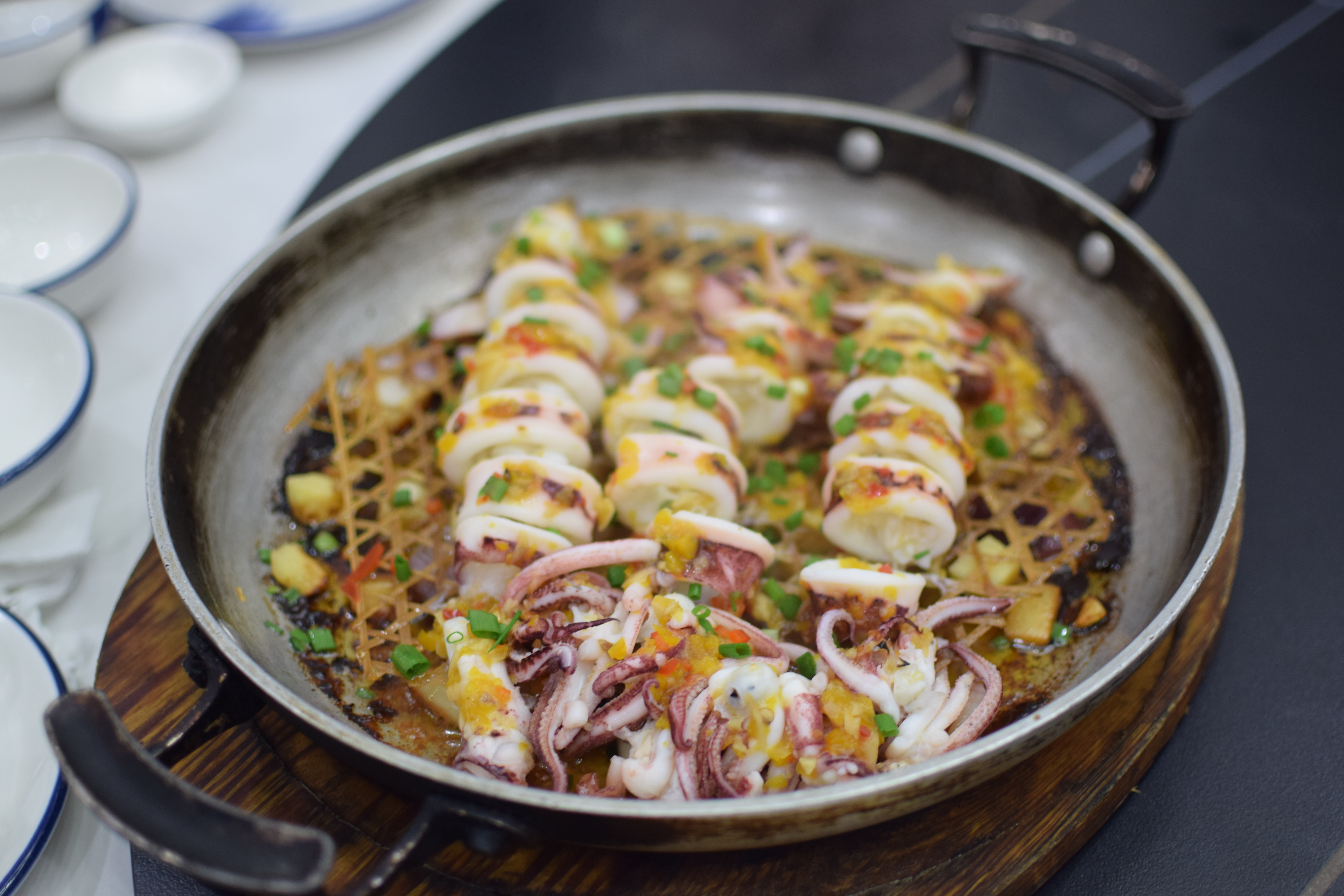 黄椒焗小管 | 每一只小管带膏,黄椒酱很特别,经过调制符合闽南人口味不会太辣,带点鲜辣,口感清新,小管肥厚Q弹。