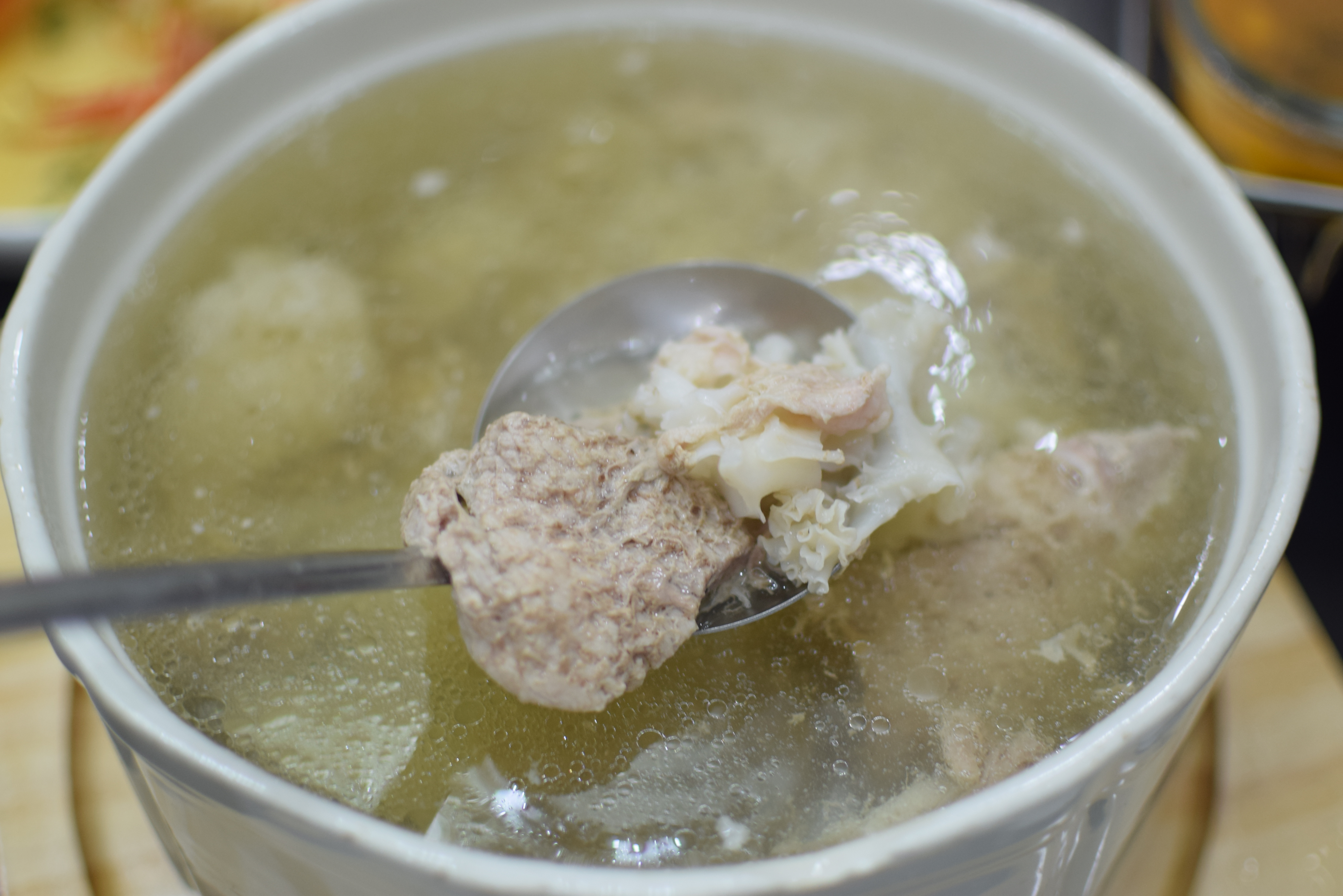 绣球菌一品汤 | 绣球菌在汤中绽放,像一朵美丽洁白的花,汤底甘甜鲜美,清凉滋阴,搭配海鲜很合适。