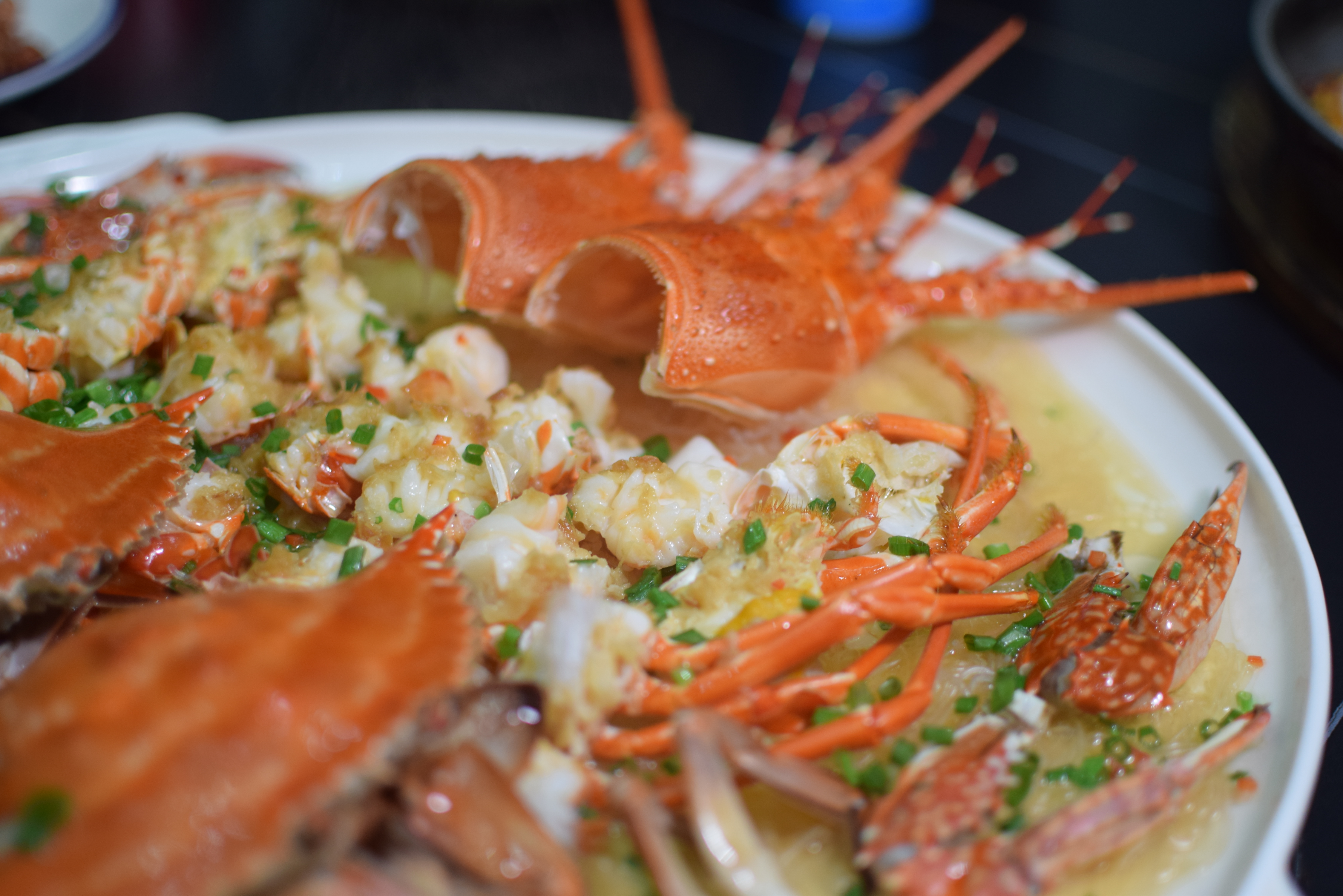 蒸小青龙 | 宴请必备。蒜蓉蒸青龙是最经典的做法,原汁原味。小青龙对半切开,斩成小段,龙虾肉洁白如玉,入口弹牙。