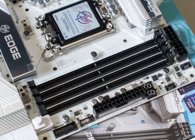如果想在颜值和性能方面进一步升级,推荐选择微星MPG Z890 EDGE TI WIFI刀锋钛,采用纯白色PCB设计,搭配大面积第二代冰霜铠甲,整体观感简约且优雅。
